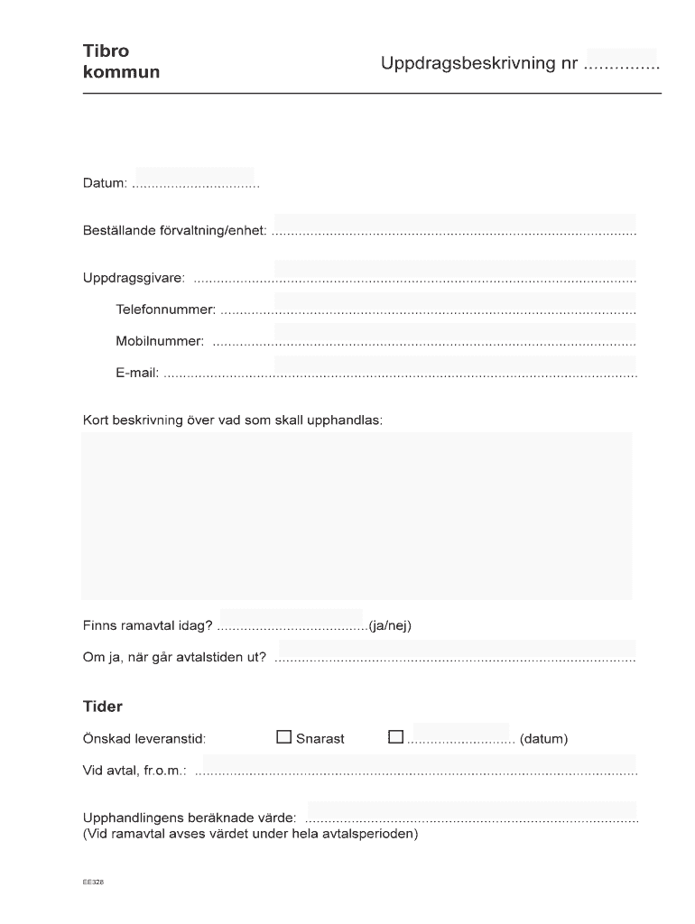 Uppdragsbeskrivning tibro kommun can usually be filled out online through the municipality's official website or by contacting the relevant department.