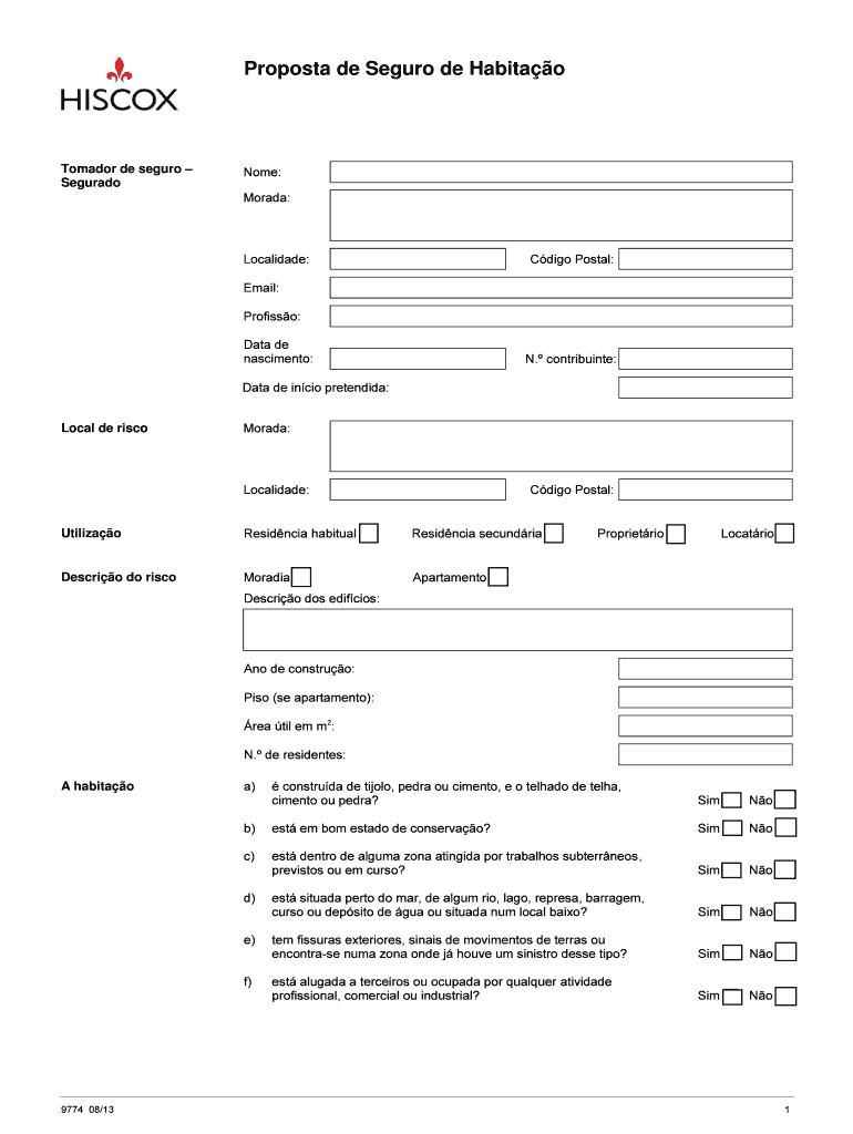 Obtenha o gratuito Proposta de Seguro de Habitao - innovariskpt