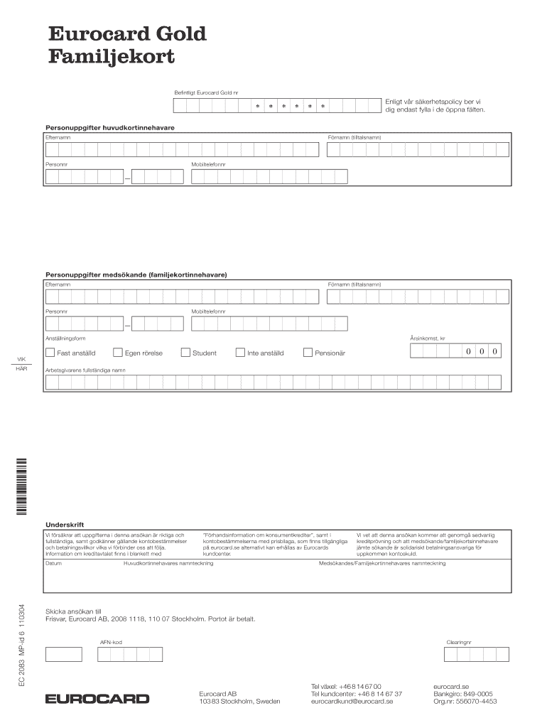 Euro card Gold Familjekort Befintligt Euro card Gold NR Enlist v r s kerhetspolicy BER vi dig east phyla i de PNA fl ten. * * * * * * Personuppgifter huvudkortinnehavare External F name (tilltalsnamn)