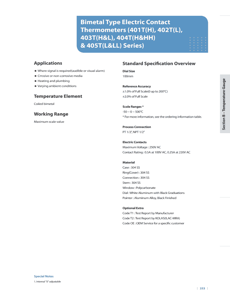 Get the free Bimetal Type Electric Contact Thermometers 401TH 402T