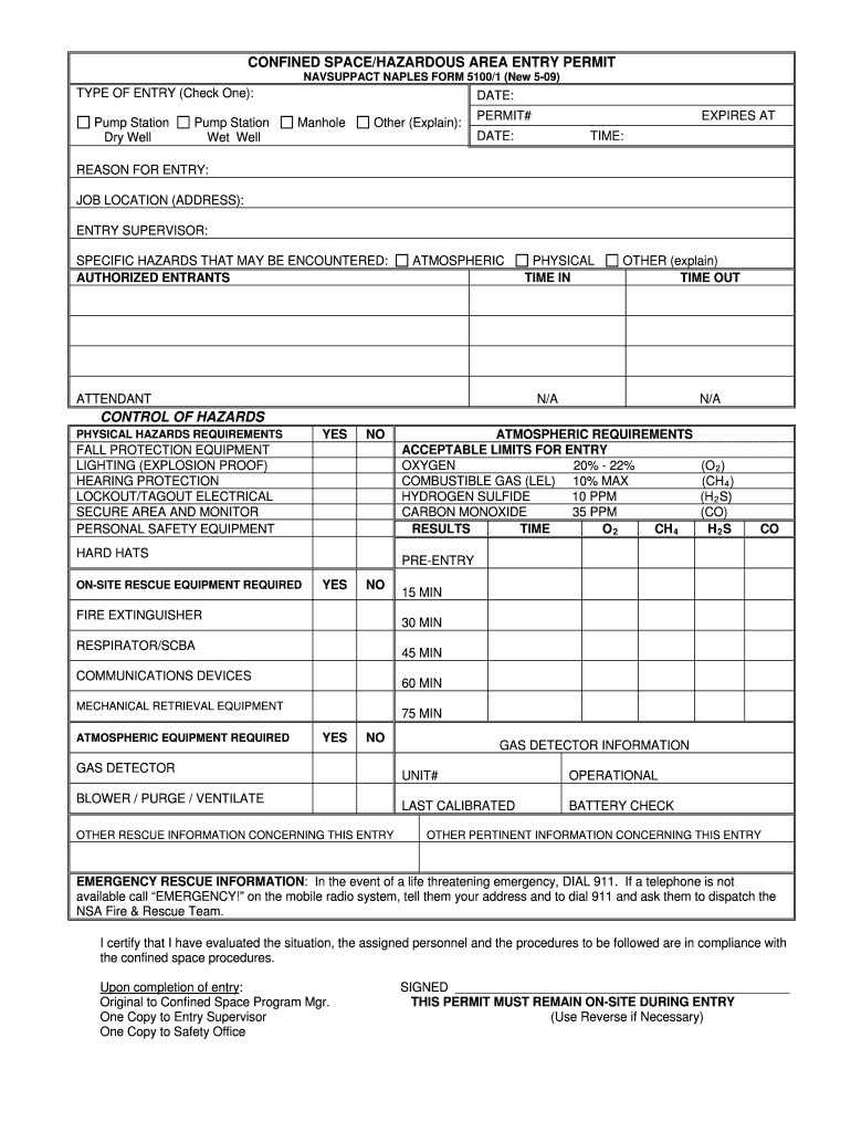 NAVSUPPACT NAPLES FORM 5100/1 is a form used by the Naval Support Activity in Naples for reporting specific incidents or situations within naval operations.