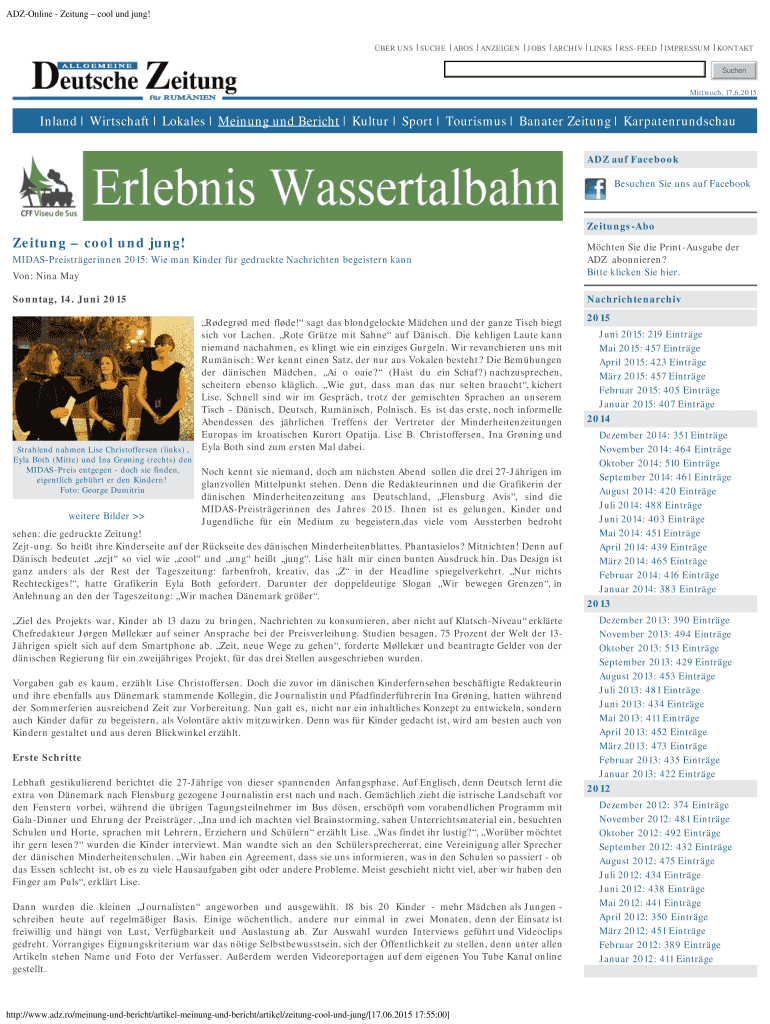 Auf adz-online - zeitung cool müssen Informationen zu den Inhalten, dem Design und der Benutzerfreundlichkeit der Online-Zeitung gemeldet werden.