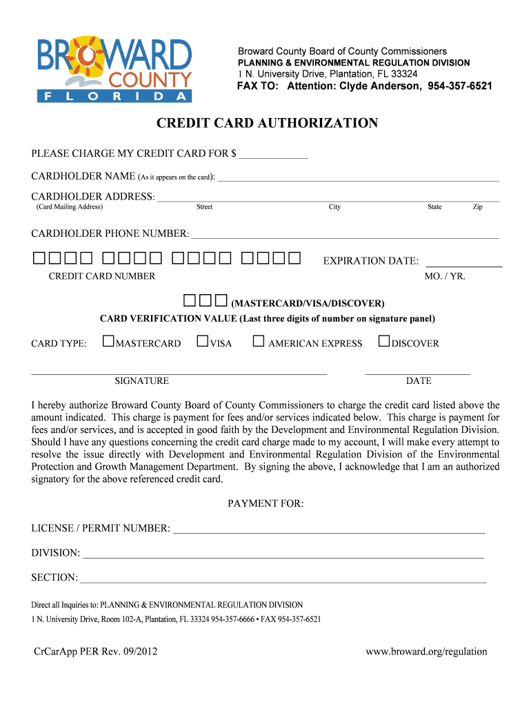 Submission Methods and Delivery for the Broward County Credit Card Authorization Form