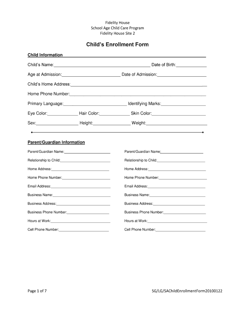 Get the free Childs Enrollment Form - Fidelity House - fidelityhouse
