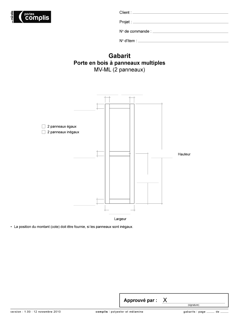 Client: par ports complies Project: No de command: No d 'item: Cabaret Port en boys bandeaux multiples MML (2 bandeaux) 2 bandeaux Gaul 2 bandeaux influx Hauteur Larger La position Du Montana (cote)