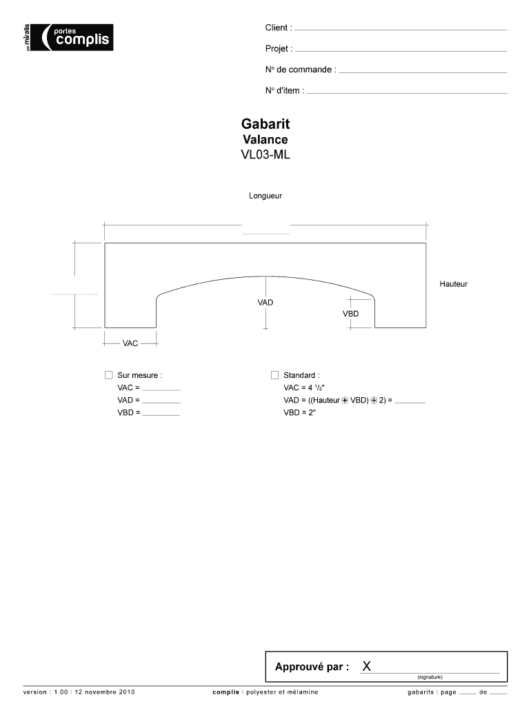Obtenir le gratuit Client: par portes complis Projet: No de commande: No d 'item: Gabarit Valance...