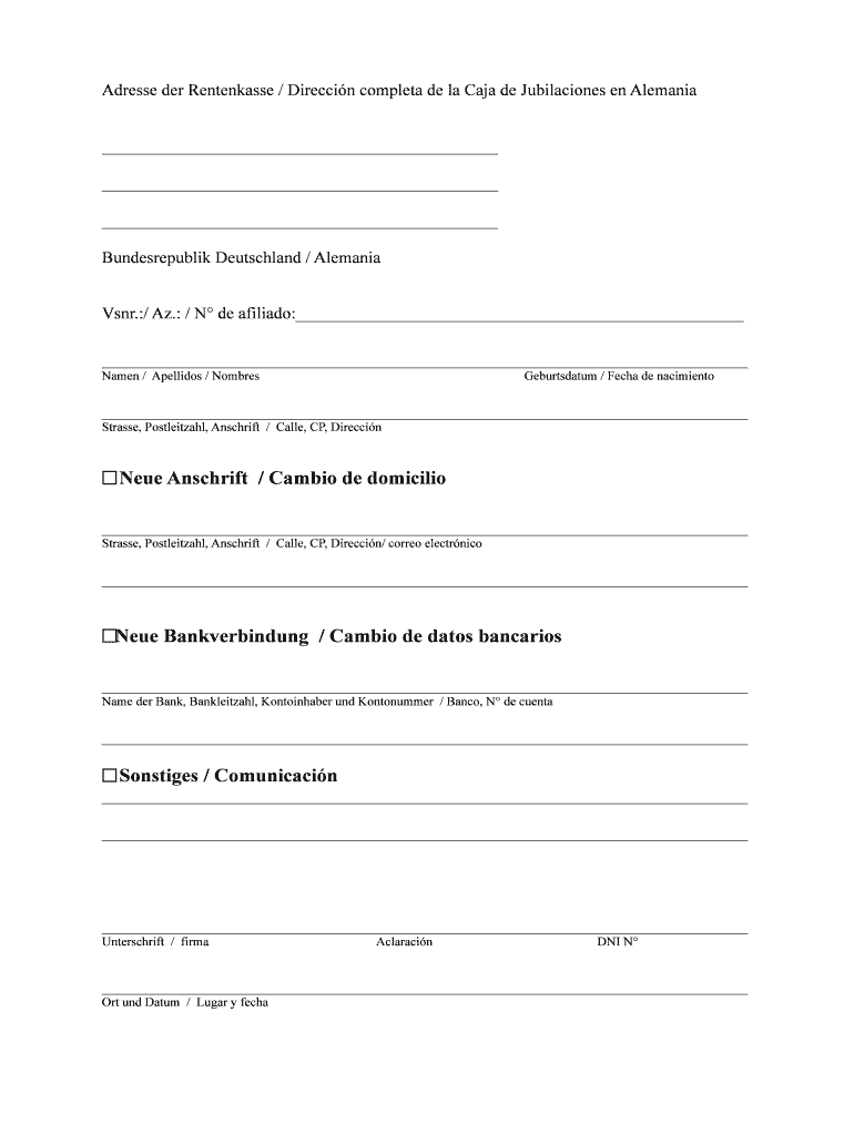 Get the free Adresse der Rentenkasse / Direccin completa de la Caja de Jubilaciones en Alemania -...
