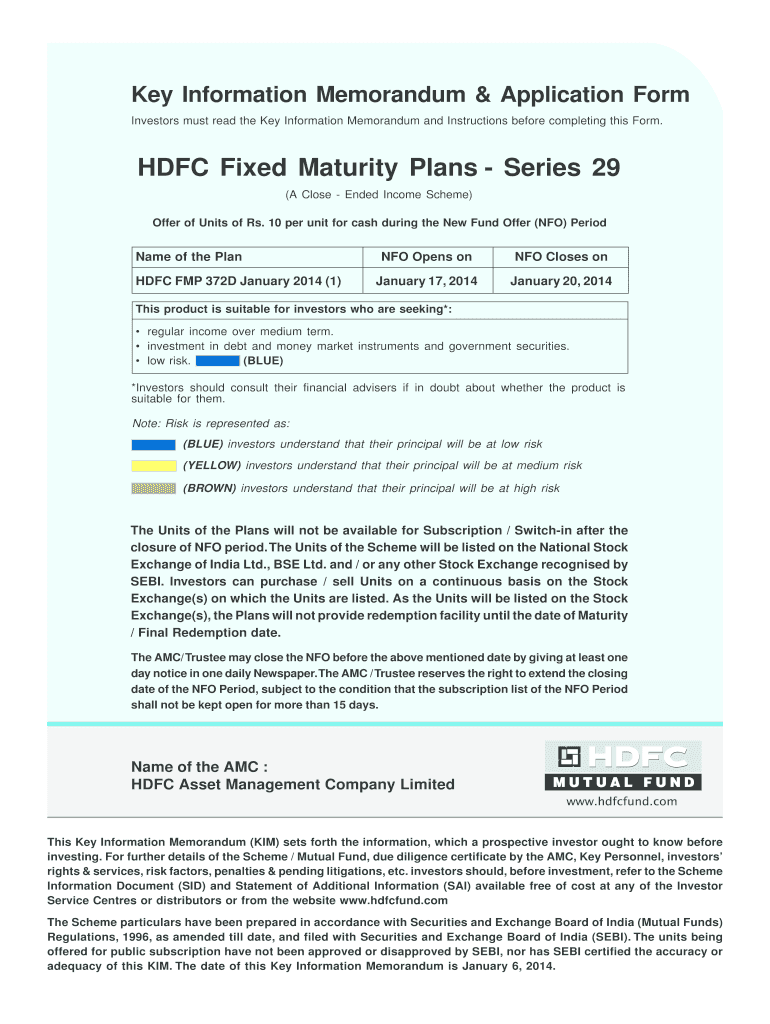The HDFC Fixed Maturity Plans Application Form is a vital document used by investors to apply for units in HDFC Fixed Maturity Plans (FMP). These plans are designed to offer a defined maturity period and aim to generate regular income with relatively low risk. The significance of this application form is particularly evident during the New Fund Offer (NFO) period, wherein timely submissions can enhance investment opportunities.