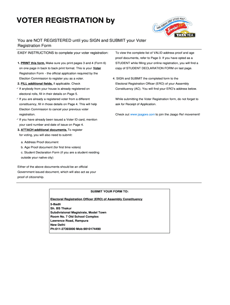 This document serves as a voter registration application required to register as a voter in the electoral rolls of India, with detailed instructions and requirements for submission.