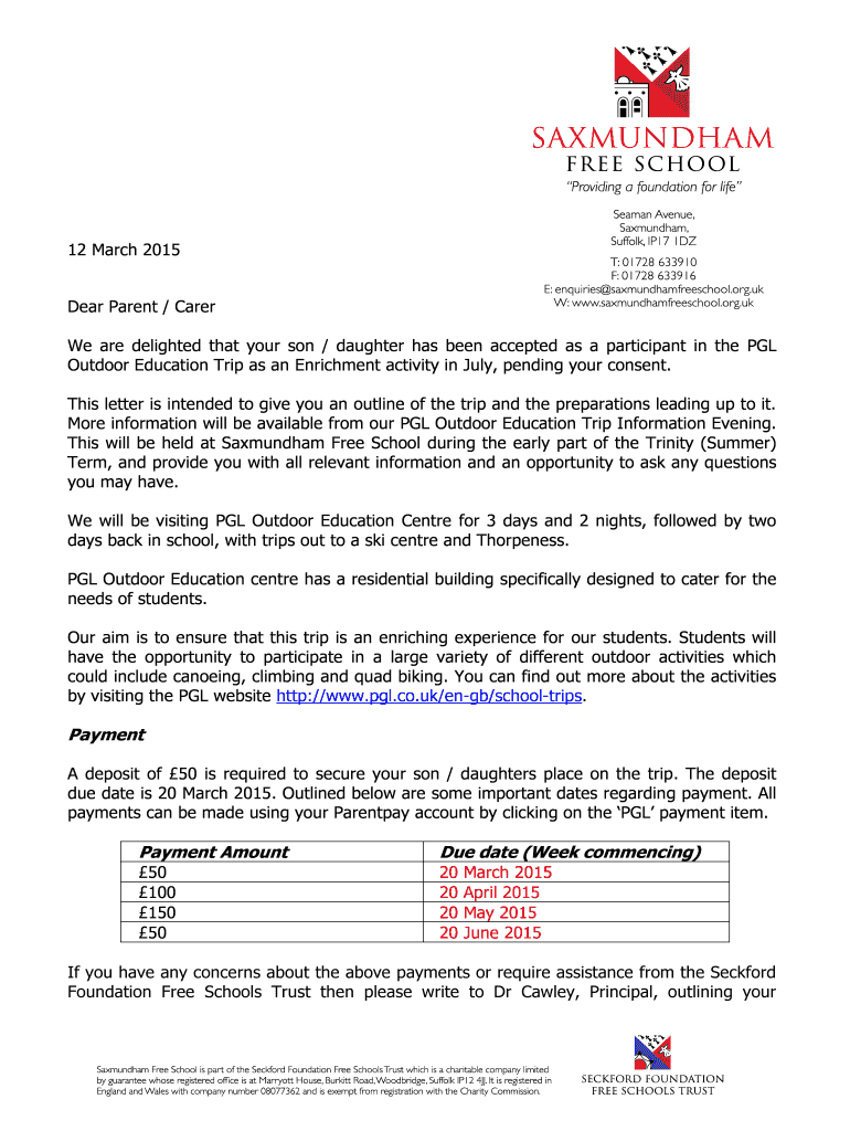 Get the free 12 March 2015 Dear Parent / Carer We are delighted that your son ... - saxmundhamfre...