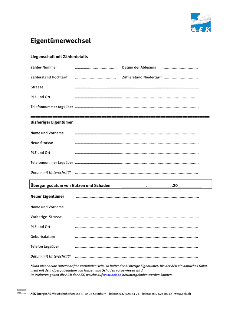 Holen Sie sich kostenlos Eigentmerwechsel - bAEKb Energie AG - aek