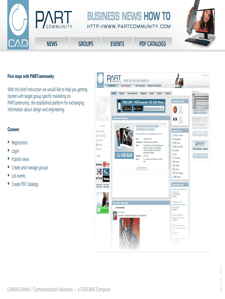 Newsgroups EVENTS PDF CATALOGS First steps with PART community With this brief instruction we would like to help you to get started with target group specific marketing on PART community, the established