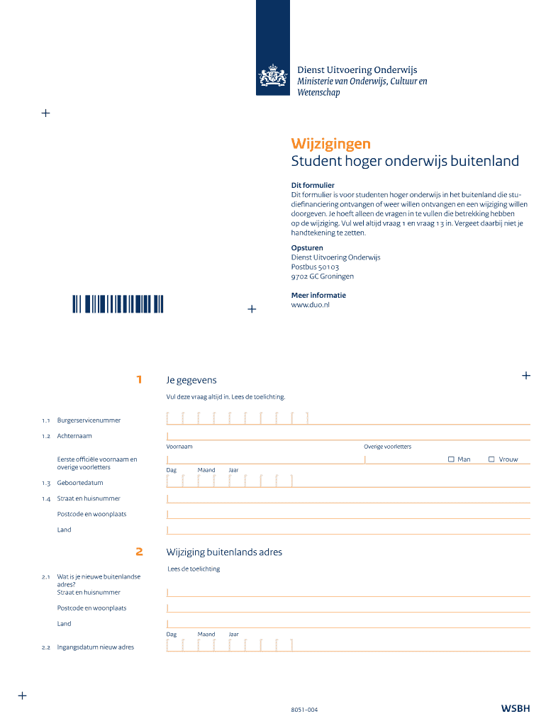 Wijzigingen student hoger onderwijs kunnen worden ingevuld via een online formulier dat door de onderwijsinstelling wordt verstrekt.