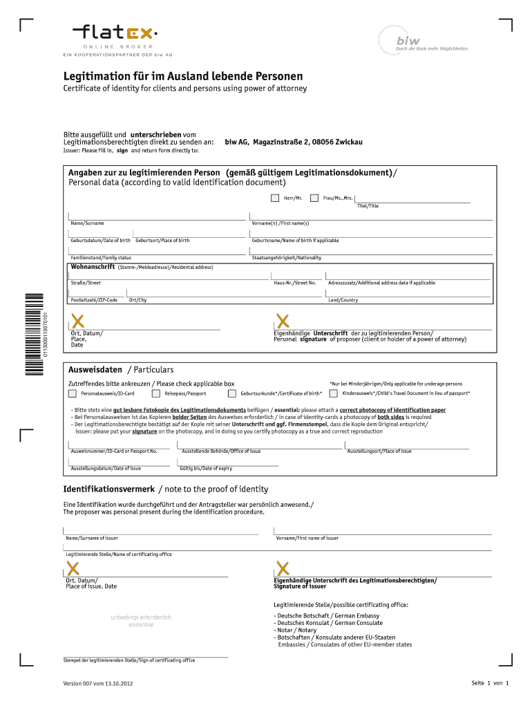 Get the free Legitimation fr im Ausland lebende Personen - flatex