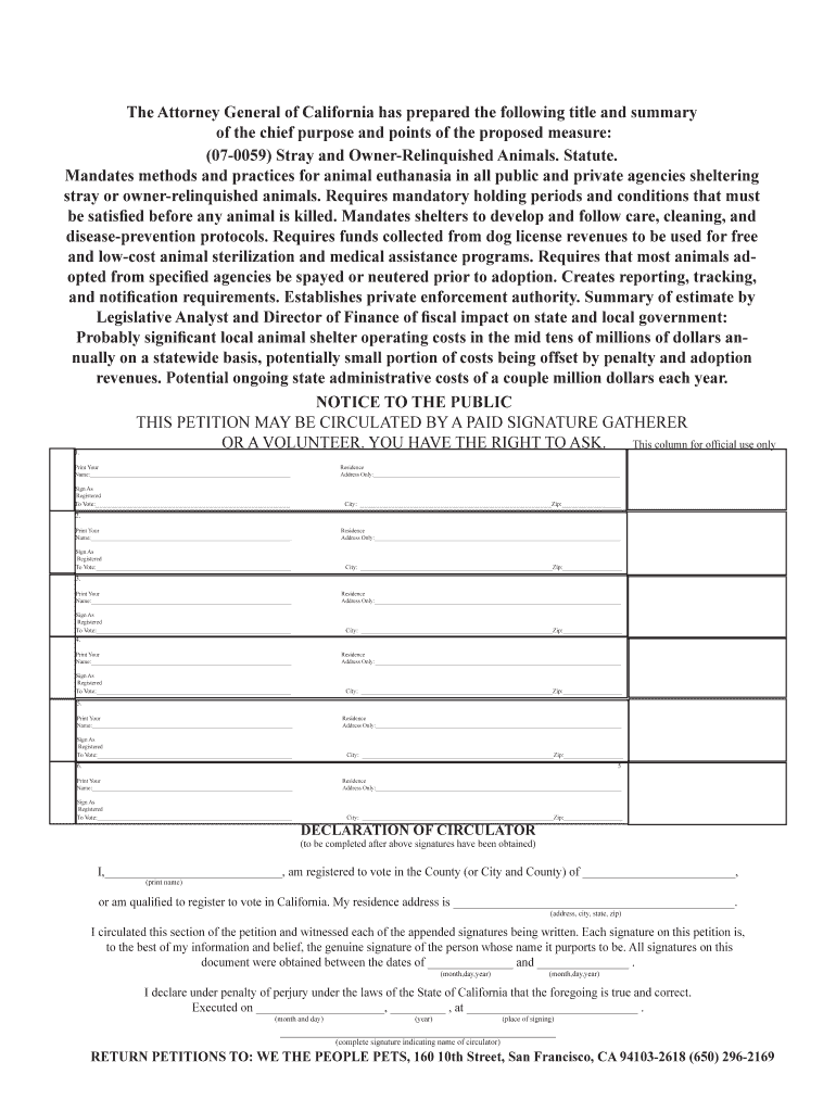This document outlines a proposed measure mandating methods and practices for the euthanasia and care of stray and owner-relinquished animals in California. It establishes protocols for shelters,