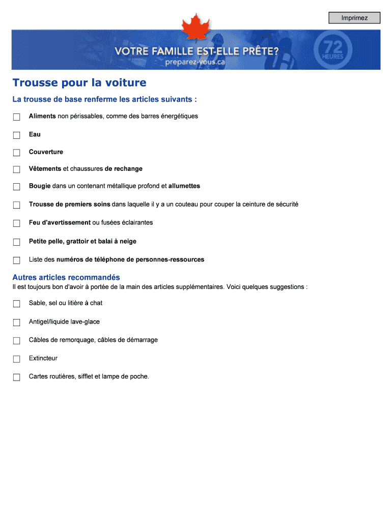Comment remplir trousse pour la voiture