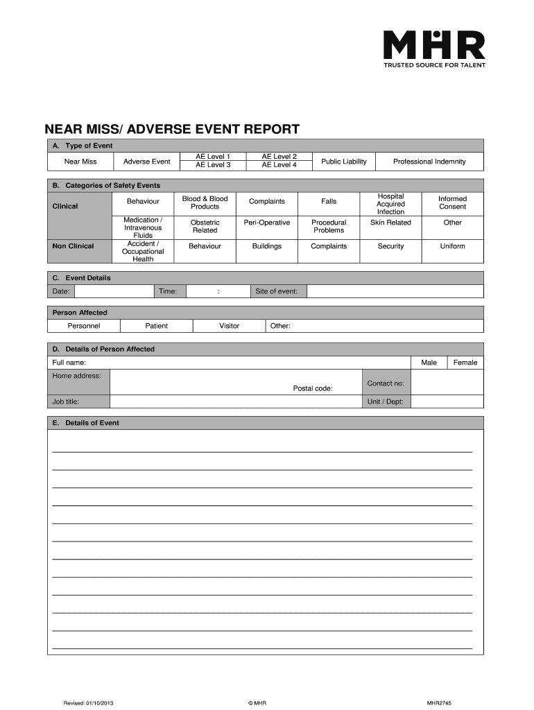 Get the free Near miss/ adverse event report - MHR