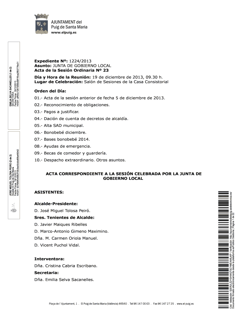 EMILIA SILVA ORGANELLES (1 DE 2) SECRETARIAT Tech Firm: 19/12/2013 HASH: aff55c7287d56bd9f1f5ca2f93776e31 Expedient N: 1224/2013 As unto: JUNTA DE GOVERNOR LOCAL ACTA DE la Resin Ordinary N 23 Day