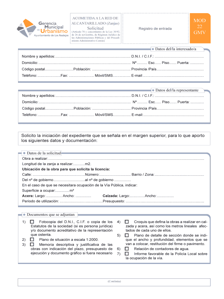 Obtener el gratis ACOMETIDA A LA RED DE MOD ALCANTARILLADO Zanjas Solicitud 22 - losrealejos