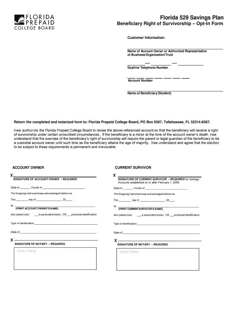 Get the free Florida 529 Savings Plan Beneficiary Right of Survivorship – Opt-In Form