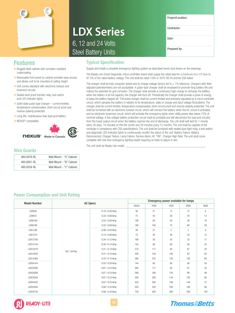 Project/Location: Contractor: LD Series Date : 6, 12 and 24 Volts Steel Battery Units Features Prepared by: Typical Specification Rugged steel cabinet with corrosion resistant undercoating Removable