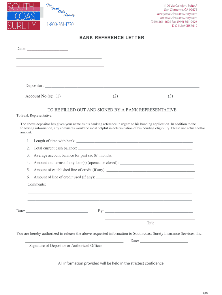 Upon filling out the Bank Reference Letter, users should be aware of the appropriate submission protocols. Recipients may include companies like South Coast Surety Insurance Services, Inc., and other bonding entities that require this verification.