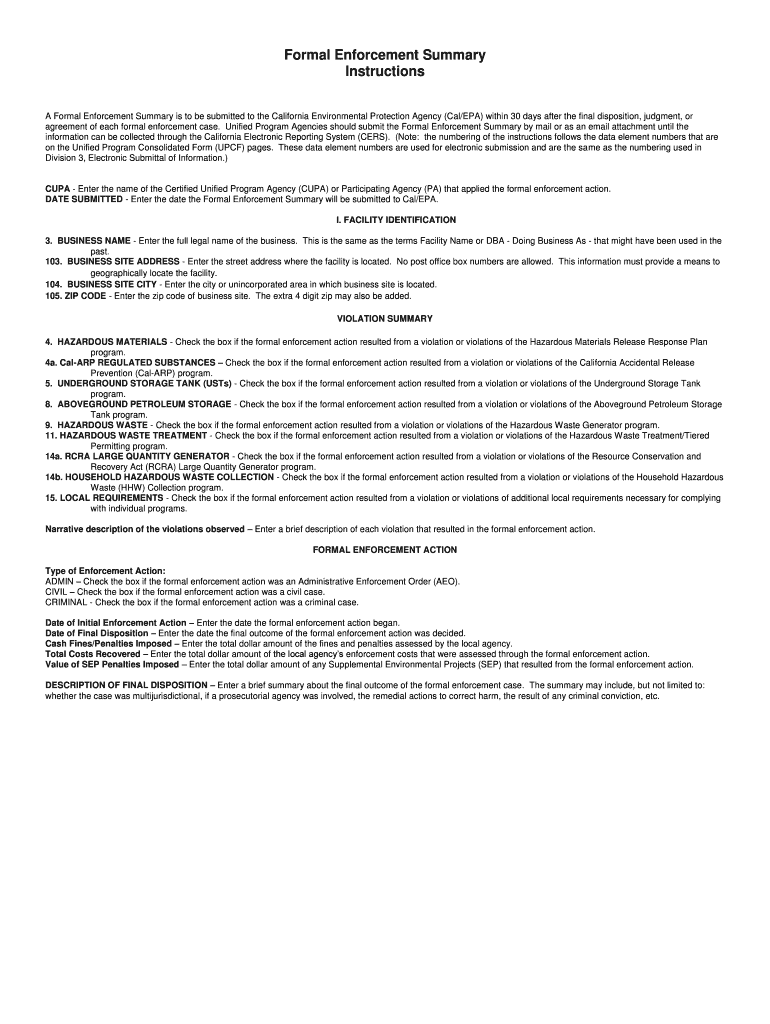 Get the free Instructions for Formal Enforcment Summary - www1 calepa ca