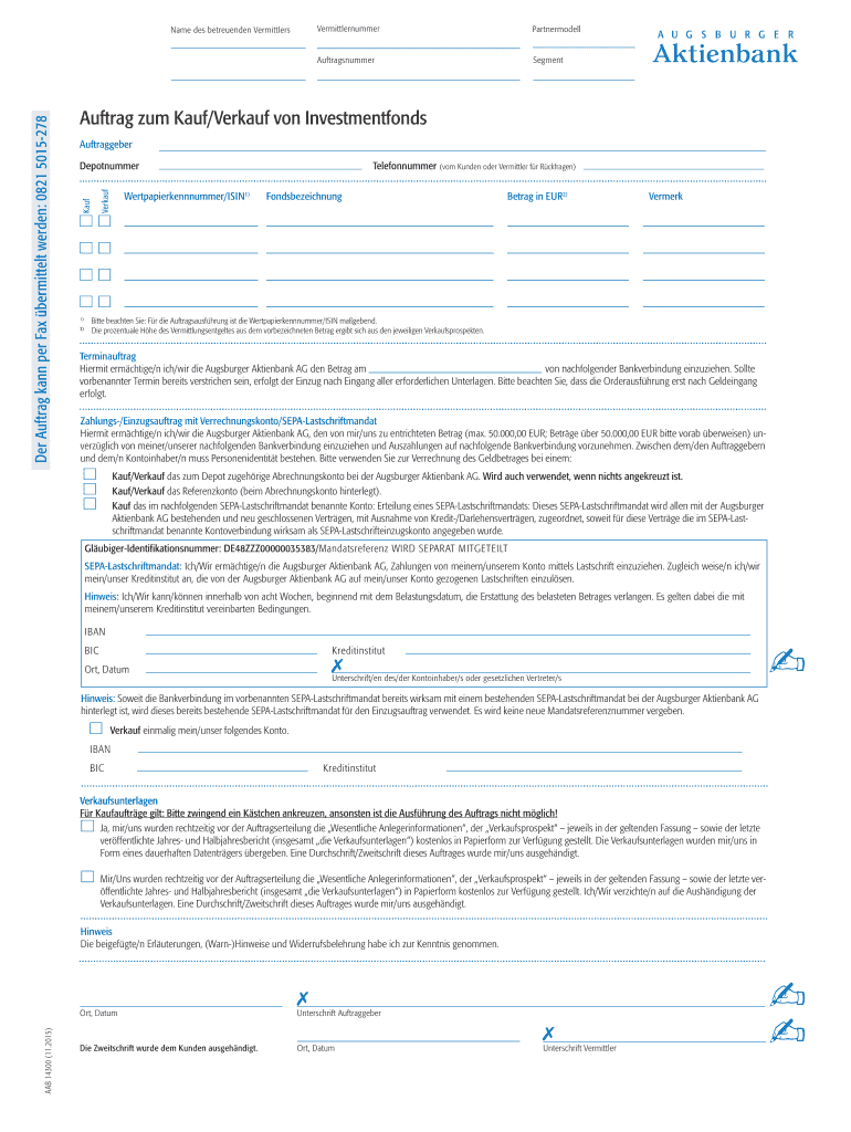 Vermittlernummer Partnermodell Auftragsnummer Name DES betreuenden Emitters Segment Her Austral Kane per Fax permitted warden: 0821 5015278 Austral sum AUF/Versus on Investmentfonds Auftraggeber Telefonnummer