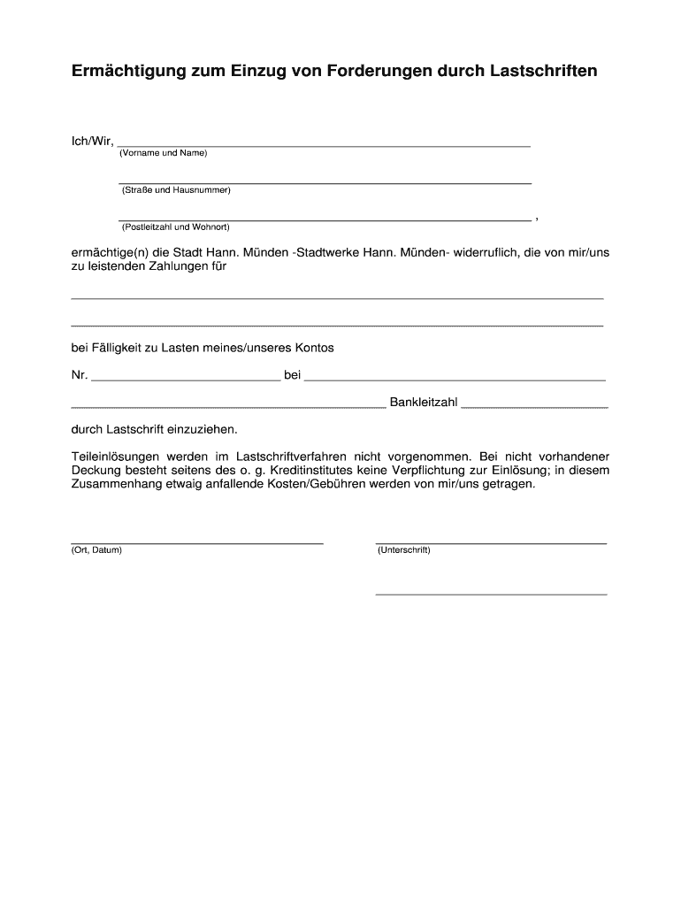 Holen Sie sich kostenlos Ermchtigung zum Einzug von Forderungen durch Lastschriften Ich/Wir, (Vor...