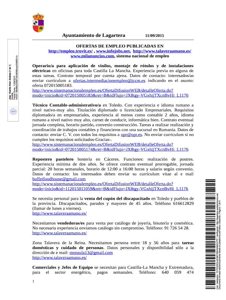 11/09/2015 OPERAS DE TEMPLE PUBLICANS EN http://empleo.trovit.es/, www.infojobs.net, http://www.talaveraamano.es/ www.milanuncios.com, system national DE temple Operation/a para application DE vigils,