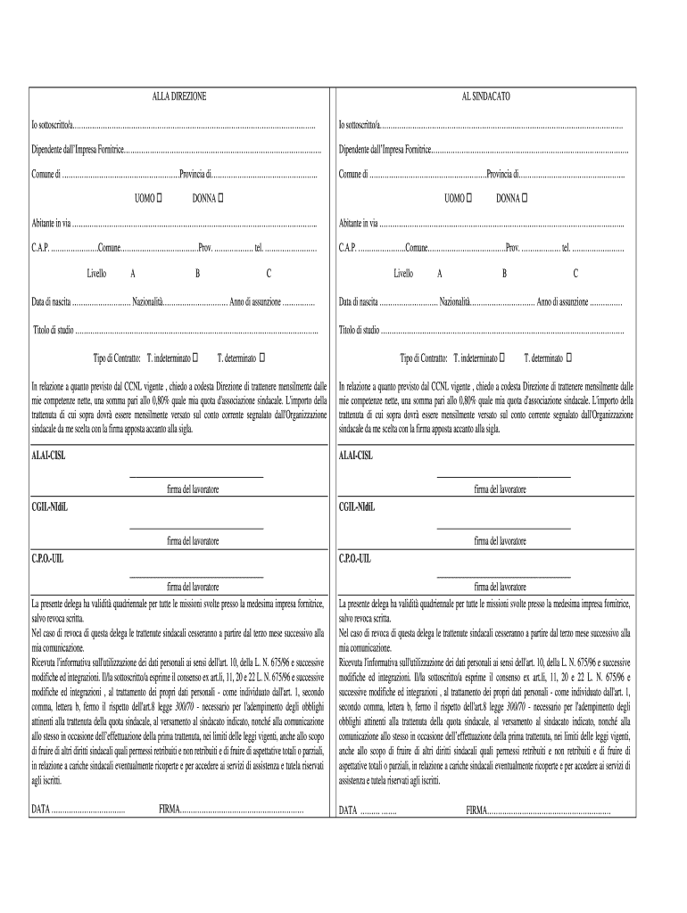 Nidil interinale ccnl all2-compilabilepdf è un documento utilizzato per richiedere l'interinale del contratto collettivo nazionale di lavoro (CCNL) settore all2.