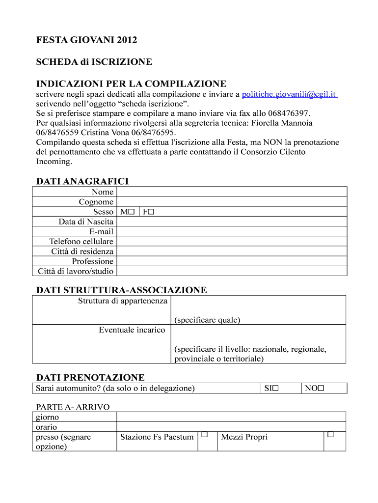 Tutti coloro che desiderano partecipare alla festa giovani 2012 devono compilare la scheda di iscrizione