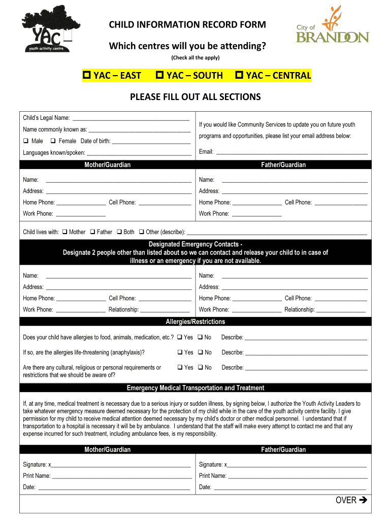 Get the free CHILD INFORMATION RECORD FORM Which ... - Brandon Youth - brandonyouth