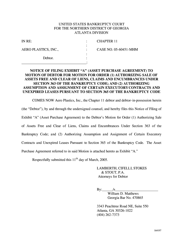Get the free NOTICE OF FILING EXHIBIT “A” TO MOTION OF DEBTOR - haysconsulting