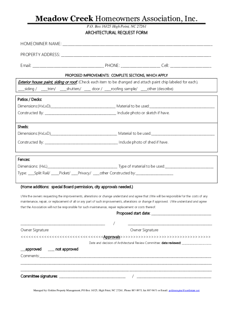 Get the free Architectural Request Form