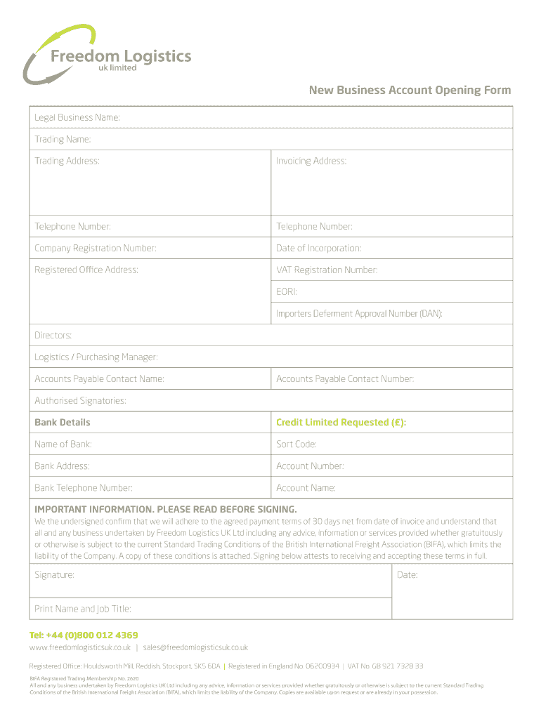 Get the free New business 30 Day Credit Application - Freedom Logistics UK