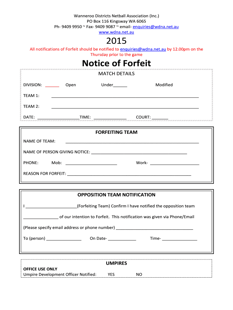 Get the free Notice of Forfeit - wdna net
