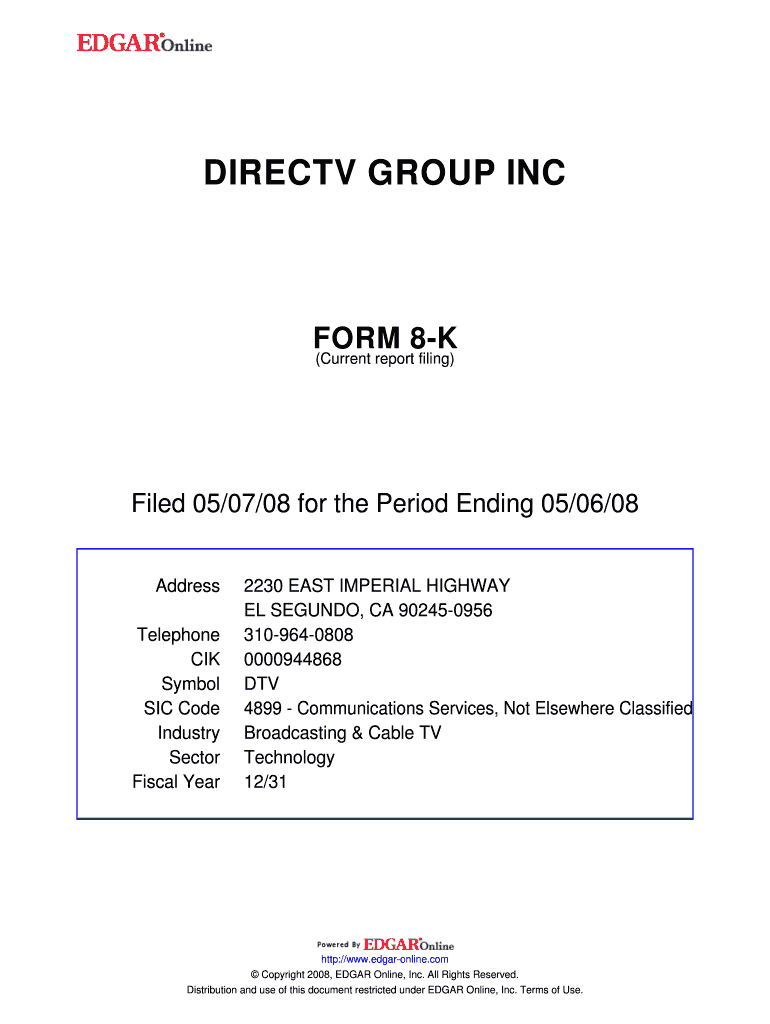 This document provides details about a current report filed by The DIRECTV Group, Inc., including a material definitive agreement with Liberty Media Corporation concerning a share repurchase program