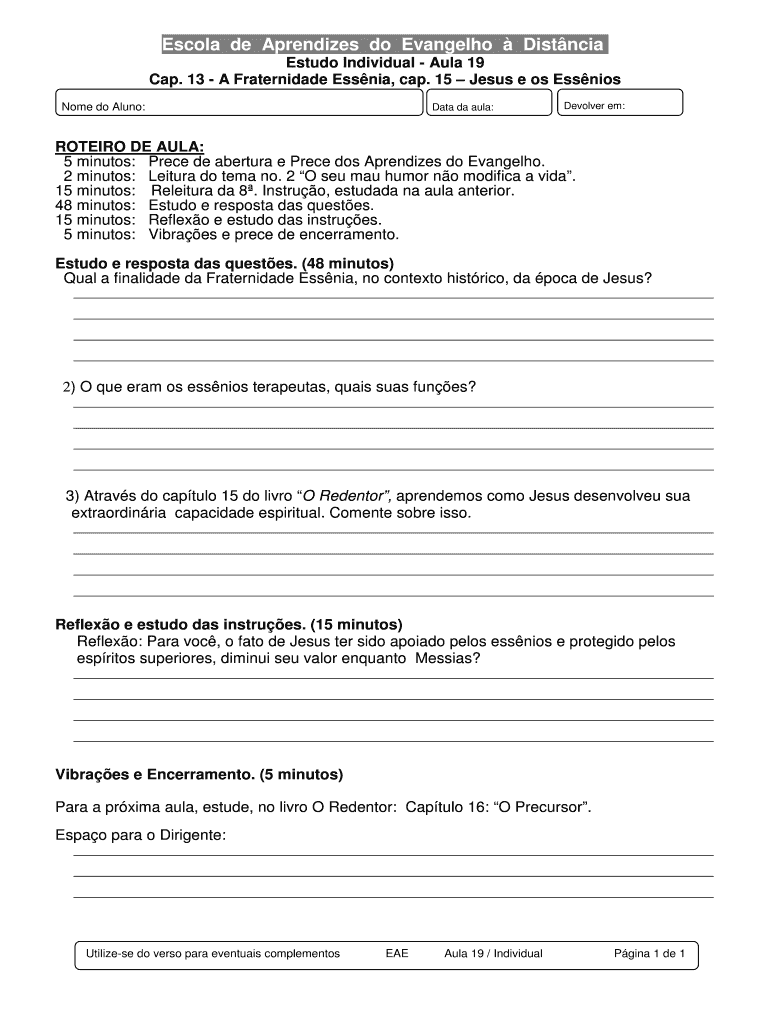Obtenha o gratuito Estudo Individual Aula 19 Cap