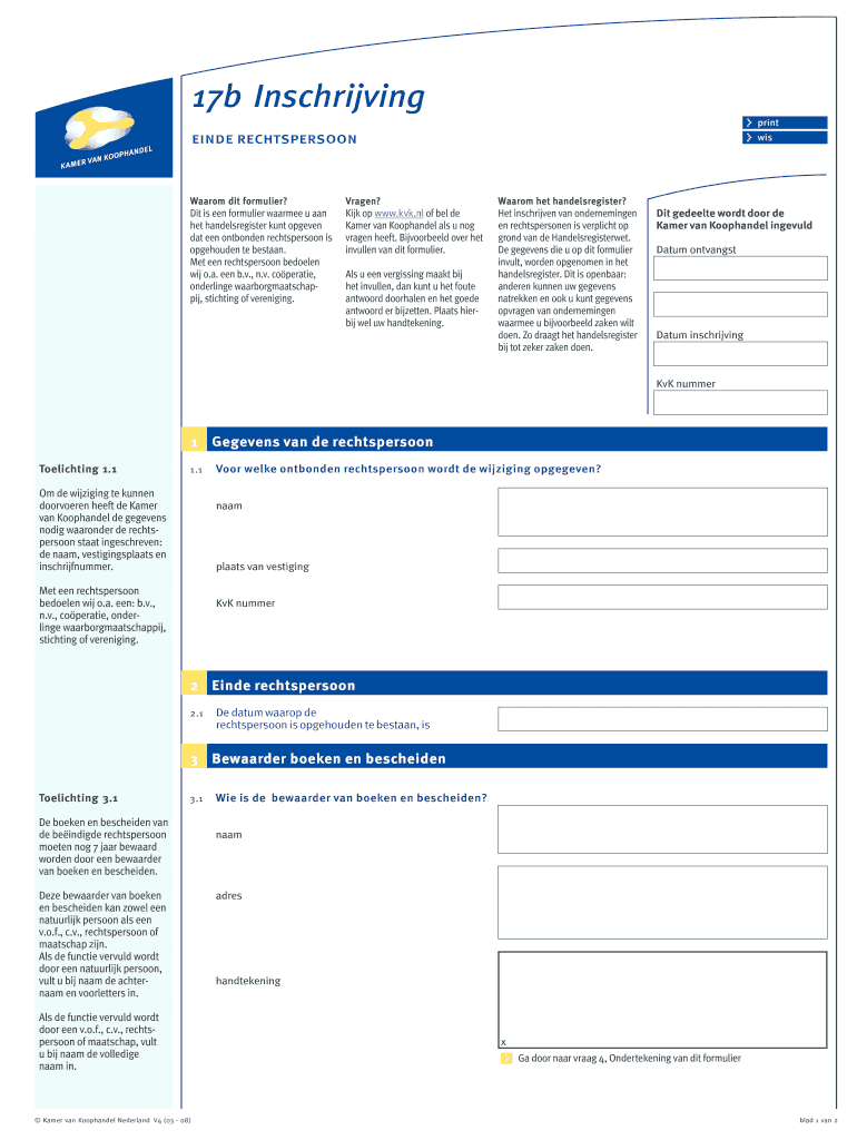 Any legal entity that is ending its registration is required to file 17b inschrijving einde rechtspersoon.