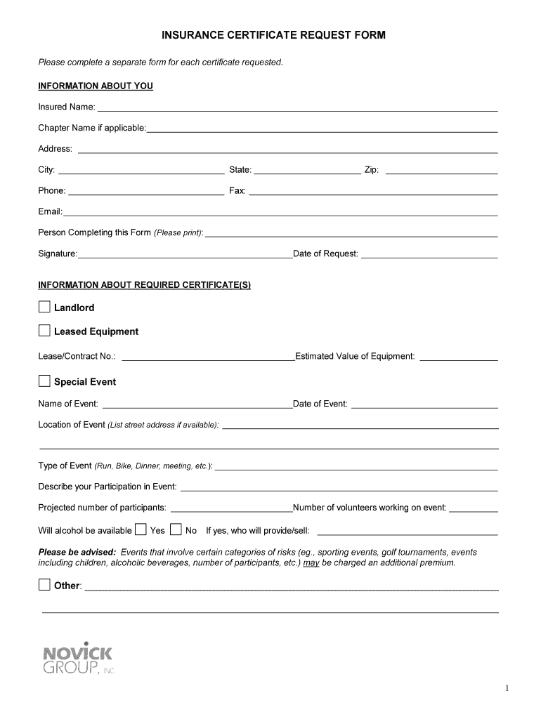 How to fill out insurance certificate request form