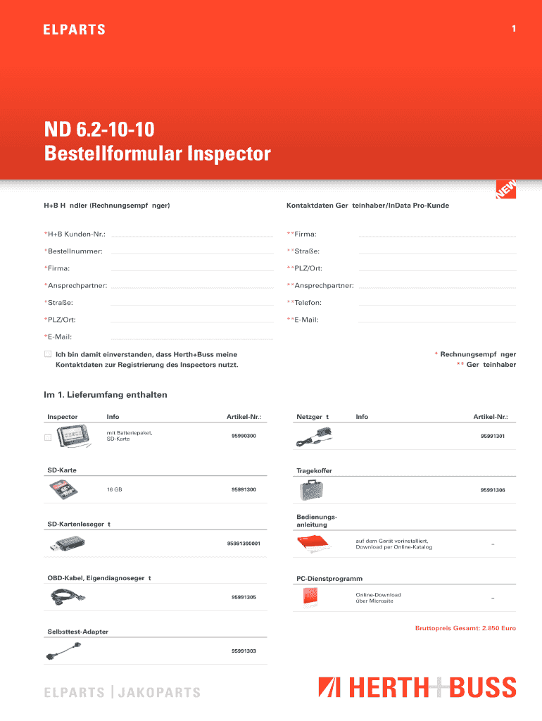 E LP ARTS 1 ND 6.21010 Bestellformular Inspector H+B Handler (Rechnungsempfnger) Kontaktdaten Gerteinhaber/Data Around *H+B Under.: **Firm: *Bestellnummer: **Straw: *Firm: **PLY/ORT: *Ansprechpartner: