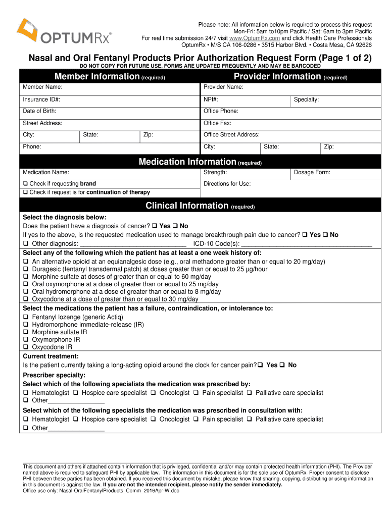 Get the free Nasal and Oral Fentanyl Products Prior Authorization ... - OptumRx
