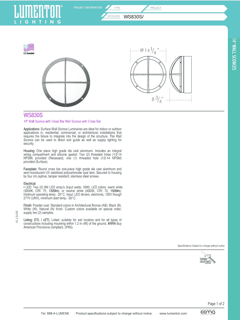 Get the free PROJECT INFORMATION PROJECT: TYPE: CATALOG#: WS830S/ 14 "