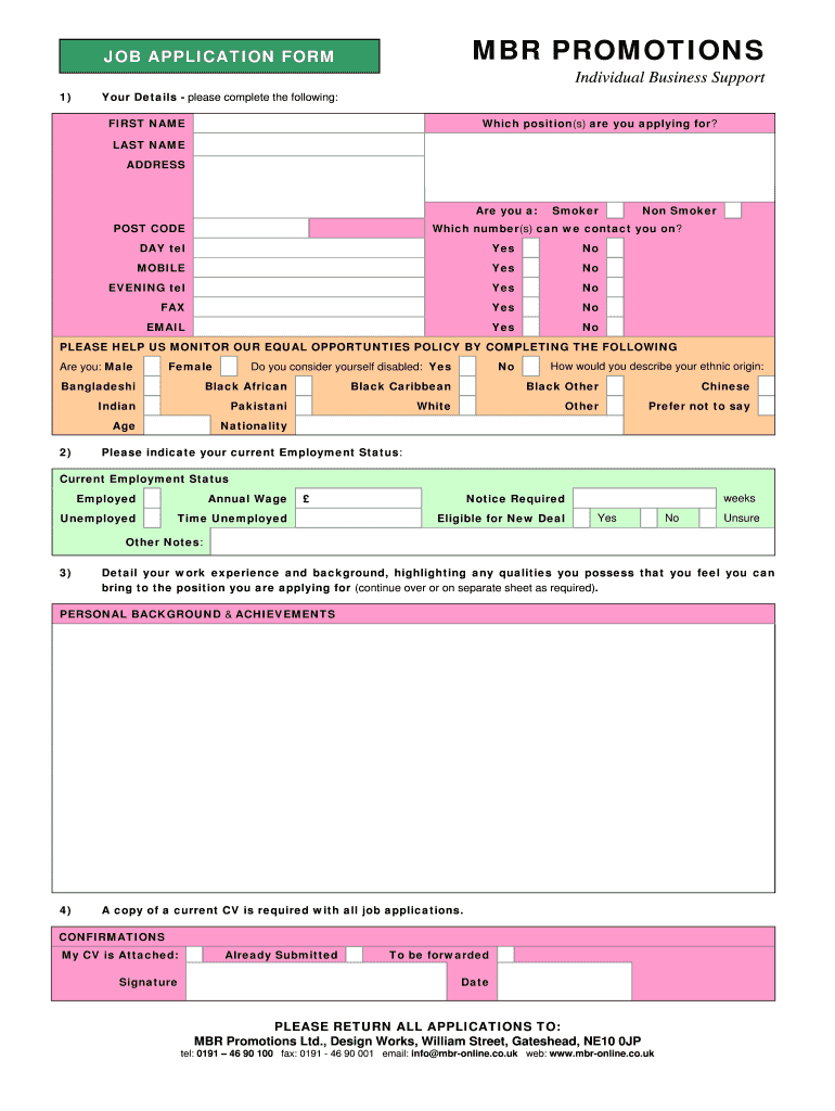 Get the free JOB APPLICATION FORM bMBRb PROMOTIONS Individual Business - mbr-online co