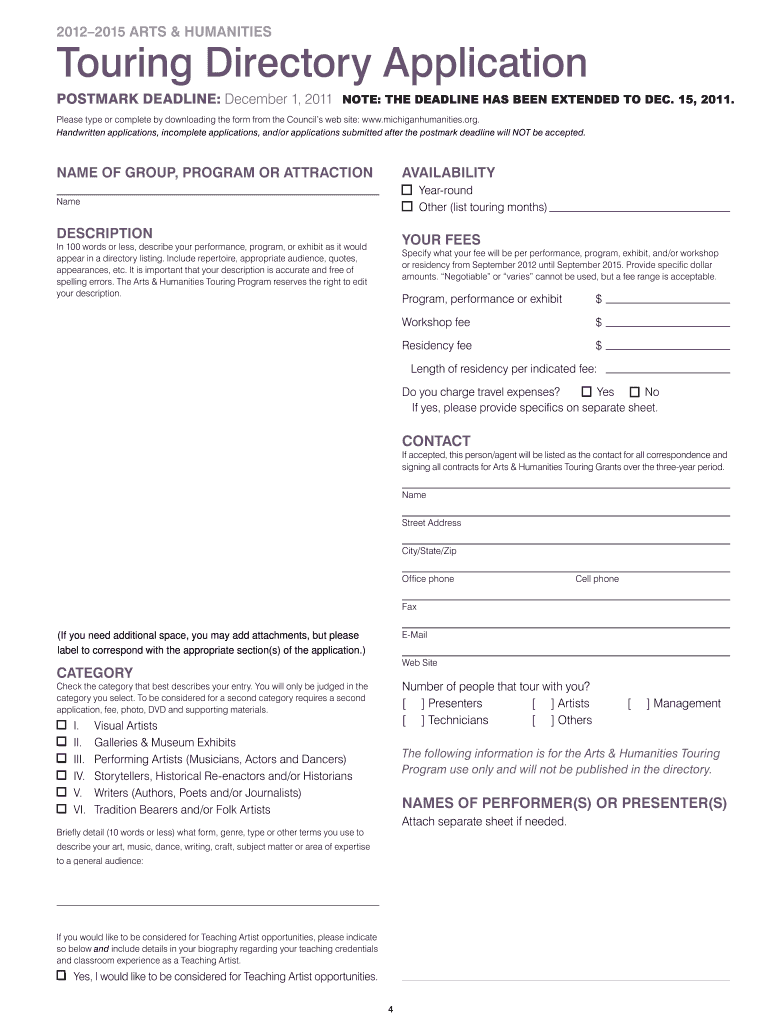 Get the free Touring Directory - Michigan Humanities Council - 67 225 162
