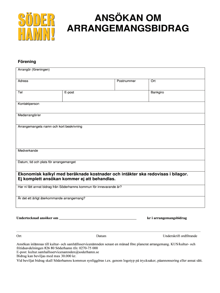 Get the free Anskan om Arrangemangsbidrag - soderhamnse