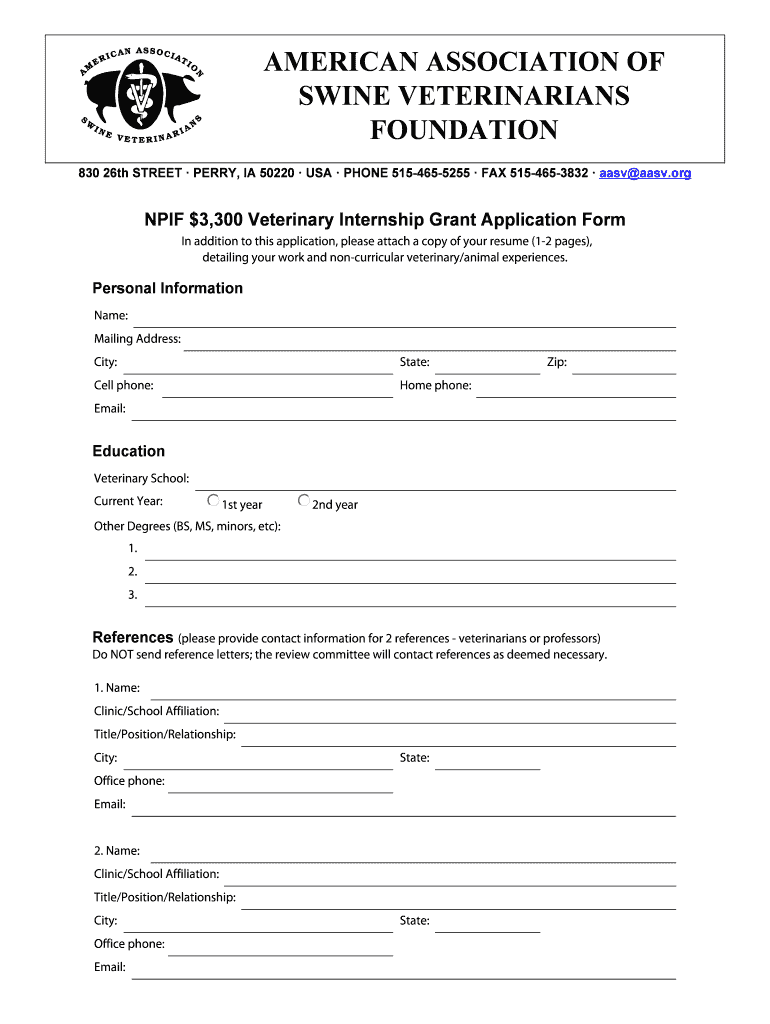 Visit the NPIF website to access the Veterinary Internship Grant Application Form.