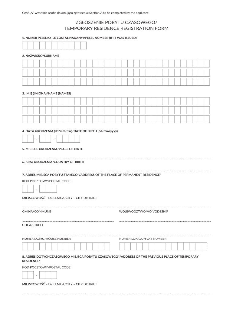 C A Armenia soda dokonujca zgoszenia/Section A to be completed by the applicant ZGOSZENIE MOBUTU CZASOWEGO/ TEMPORARY RESIDENCE REGISTRATION FORM 1. NUMBER PEEL (O MILE ZOSMA NAD ANY)/PEEL NUMBER