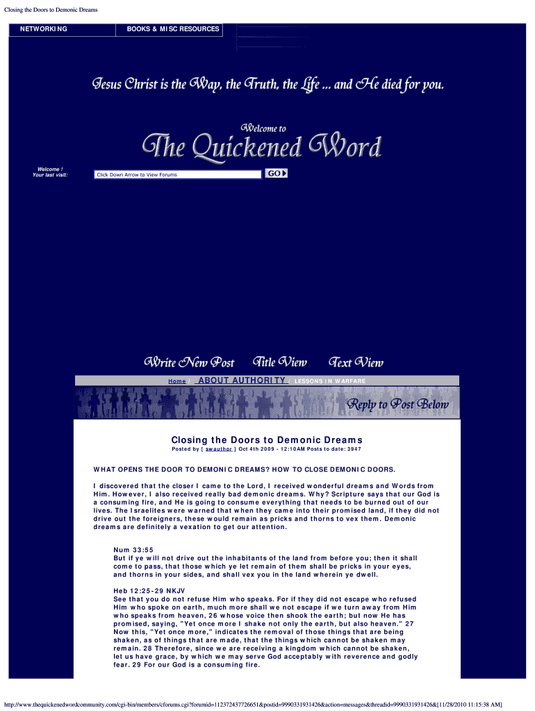Get the free Closing the Doors to Demonic Dreams.pdf - The Quickened Word - thequickenedword